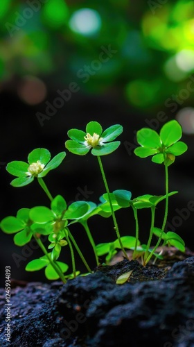 Forest floor clover blooms, spring growth, natural background, nature photography, website use
