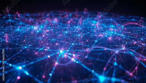 no people, network, mesh, node, glowing, neon, luminescent, line, datum, flow, digital, futuristic, technically, connectivity, cyber, abstract, visualisation, web, arc, loop, light, blue, pink, blue light, complex, depth, black background, virtual, space, three-dimensional, simulated, illuminated, cybernetic, technology, signal, connection, electronic, high technology, modern, innovation, energy, pattern