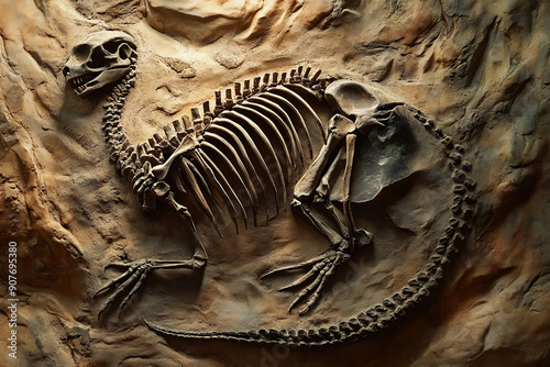 fossil, skeleton of a dinosaur ,ancient cave in the desert