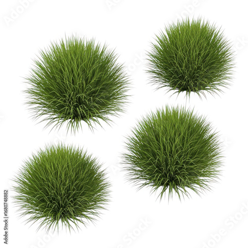 Four fluffy green round grass tufts isolated on a for nature and gardening designs