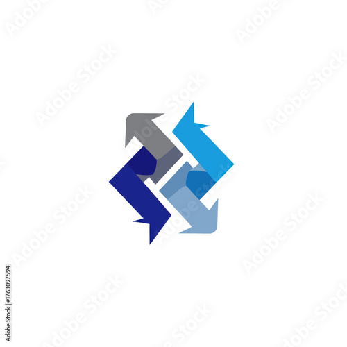 arrow, arrow, cycle, loop, square, shape, icon, logotype, symbol, graphic, vector, illustration, design, element, abstract, modern, simple, clean, minimal, flat, blue, grey, direction, movement, motion, flow, process, progress, forward, change, exchange, reusing, recycling, rotation, spin, turn, connection, connected, together, oneness, teamwork, partnership, collaboration, corporate, business, company, brand, identity, technology