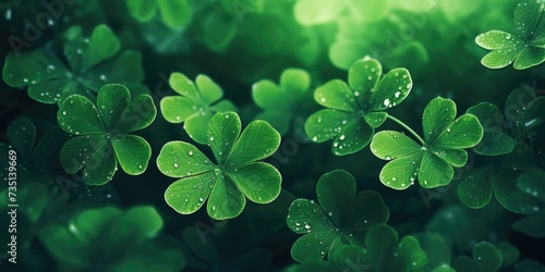 Four leaf clovers with water droplets. Can be used to represent luck, nature, or the beauty of small things