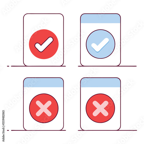 checkmark, cross, icon, symbol, yes, no, correct, incorrect, approved, rejected, selection, choice, decision, confirmation, cancel, error, success, validation, rating, feedback, agreements, disagreement, option, interface, graphic, design, illustration, vector, flat, modern, simple, clean, minimalist