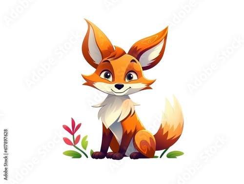 fox, cartoon, white, background, style, cute, animal, illustration, art, design, animation, character, fun, playful, quirky, whimsical, graphic, digital, colourful, vibrant, bold, simple, minimalist, iconic, modern, generative, ai