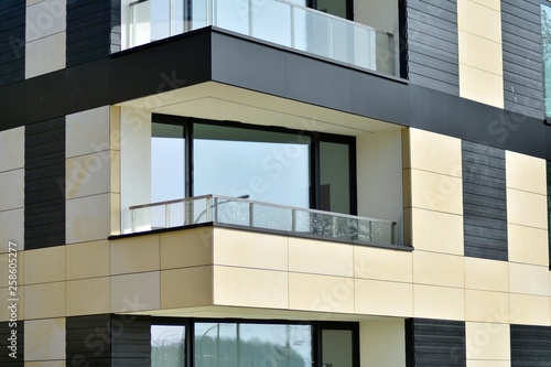 Fragment of a modern apartment building in front. Very modern apartment house.