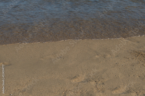 fragment of beach where the sea and the wet sand meet in Barcelona beach. Spain