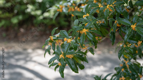 fall, orange, green, plant, nature, landscape, open air, sunny, yellow, perfume, wood, aroma, copy space, japan, asia, japanese, aroma, light, relax, mountain, healing, leaf, branch, flower, season, garden, forest, day, outdoors, flower petals, light, green, park, lovely, clean