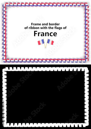 Frame and border of ribbon with the France flag for diplomas, congratulations, certificates. Alpha channel. 3d illustration