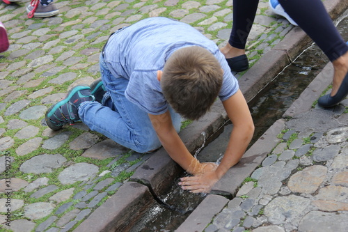 freiburg, black forest, cobble, stream, water, boy, children, young, people, teenage, person, nature, summer