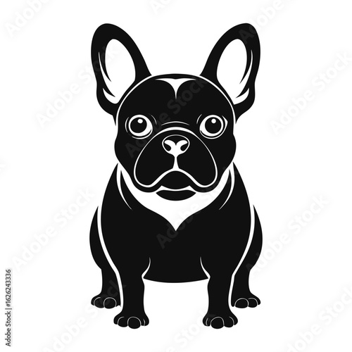 french bulldog, dog, pet, sitting, black-and-white, illustration, animal, canino, breed, domestic, cute, puppy, vector, silhouette, graphic, design, cartoon, friendly, loyal, companion, alert, ear, playful, stylish, mascot, adorable, bulldog, french, white, isolated, portrait, white background, studio, isolated on white, mammal, brown, purebred, funny, pedigree, standing