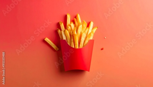French Fries in Red Fast Food Carton on Colorful Background