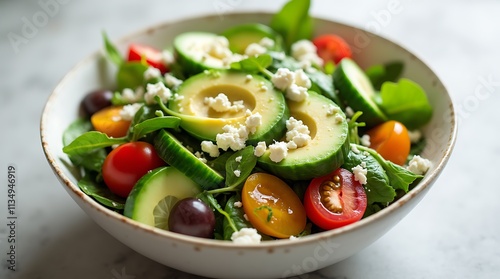 generative, ai, salad, health food, avocado, tomatoes, cucumber, spinach, feta, bowl, food photography, healthy eating, diet, cookery, vegetable, receipe, closeup, diet food, lunch, dinner, healthy lifestyle, nourishment, appetising, spring, summer, gourmet food, lifestyle, cooking, organic food, vibrant, delicious, closeup, natural light, studio shot, white bowl, eatery