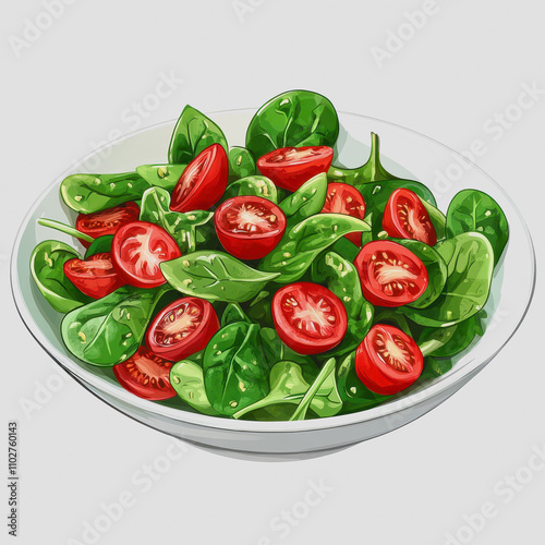 Fresh and Vibrant Salad with Spinach and Cherry Tomatoes in a White Bowl, Ideal for Healthy Eating or Culinary Presentation
