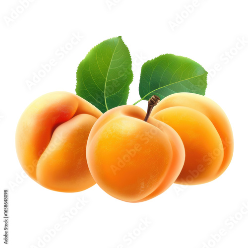 Fresh apricots with green leaves, vibrant and juicy fruit cluster