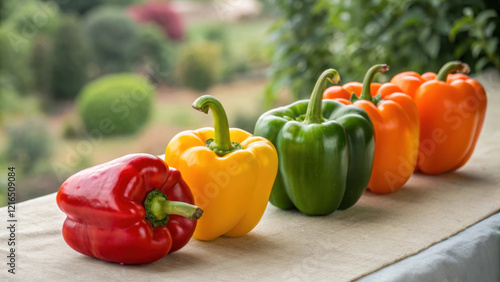 Fresh assorted bell peppers in vibrant colors arranged on table