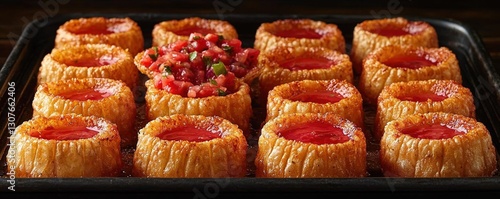 Fresh Baked Pastries with Strawberries in Baking Tray