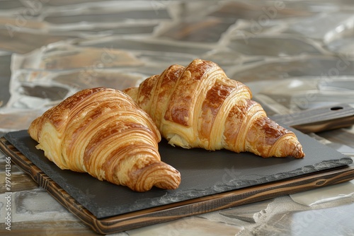 Fresh Bakery Brunch: Two Delicious Croissants on Rustic Slate Board