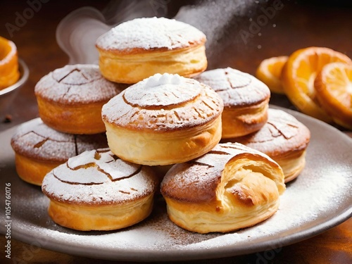 background, baked, bakery, breakfast, bun, cake, closeup, confectionery, cookery, delicious, dessert, dough, eat, eclair, food, fresh, epicure, homemade, meal, pastry, profiterole, cotton balls, snack, sugar, sweet, table, tasty, traditional, white, wooden, bun, bread, deliciously, eatery, croissant, plate, dish, brown