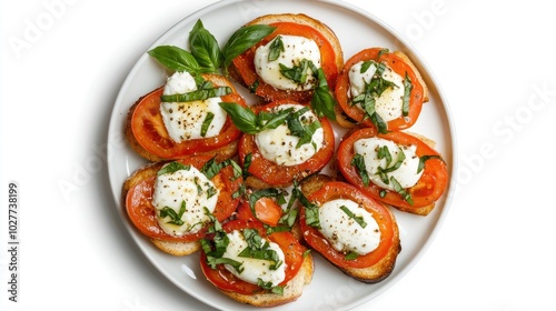 Fresh Caprese Salad on Toast with Basil and Tomato