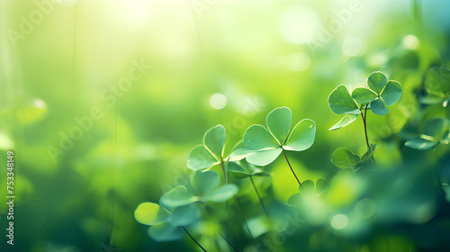 Fresh clover leaves bask in the soft, dappled sunlight, creating a serene and tranquil green backdrop.