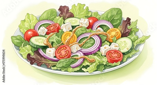 Fresh Garden Salad with Feta Cheese and Red Onion.
