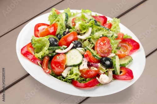 fresh, lettuce, epicure, plate, food, leaf, vegetable, cheese, breakfast, red, healthy, health food, nourishment, dinner, meal, snack, lunch, dish, ingredient, pepper, onion, feta, salad bowl, vinaigrette, raw, appetising