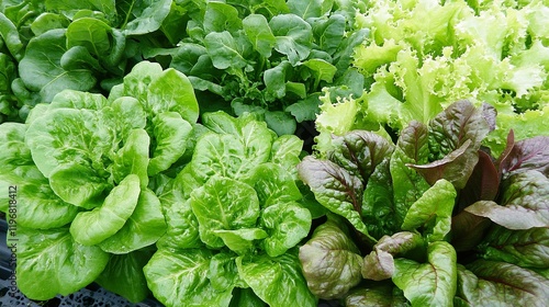 Fresh green and red lettuce varieties in a vibrant garden display