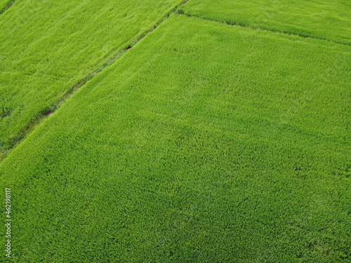 fresh green rice fields, aerial photographs from drones
