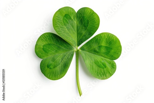 Fresh green shamrock isolated on white background, traditional St. Patrick’s Day symbol associated with Irish culture, good fortune, and Celtic traditions.
