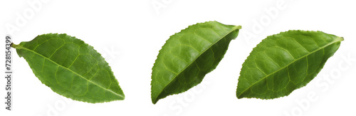 Fresh green tea leaves isolated on white, set