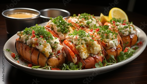 Fresh Lobster Rolls Topped with Chopped Herbs and Drizzled Butter, Served with Lemon