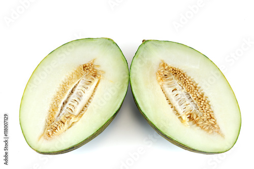 melon, half, isolated, ripe, healthy, cantaloupe, slice, nobody, natural, green, cut, white, sweet, diet, yellow, fruit, background, fresh, food, juicy, raw