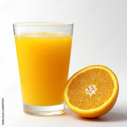 Fresh Orange Juice in a Glass with Halved Orange Slices