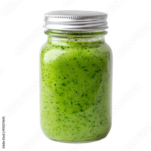 Fresh organic green smoothie in a jar isolated on transparent backdrop
