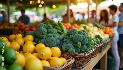 Fresh Organic Produce at Farmers Market Lemons Broccoli and More