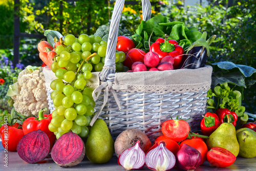Fresh organic vegetables and fruits in the garden