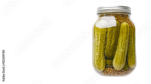 Fresh Pickles in Glass Jar with Spices on a Neutral Background