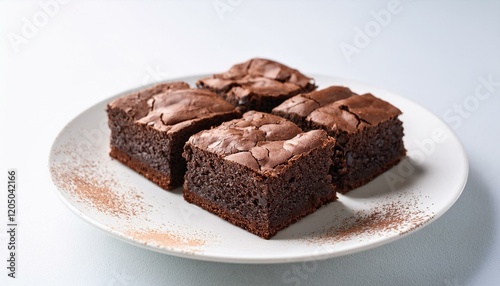 Fresh pieces of delicious chocolate brownies on white background