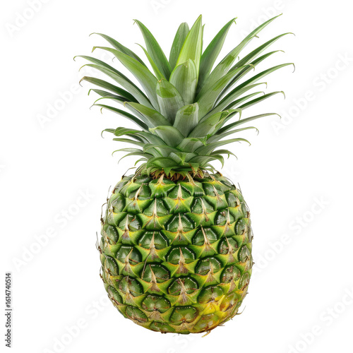 pineapple, fruit, green, tropical, fresh, ripe, healthy, food, sweet, delicious, juicy, vitamin, nourishment, vitamin c, organic, isolated, closeup, whole, round, scale, spine, leaf, crown, top, bottom, edible, nature, summer, vitamin, diet, produce, plant, raw, studio, bright, natural, tasty