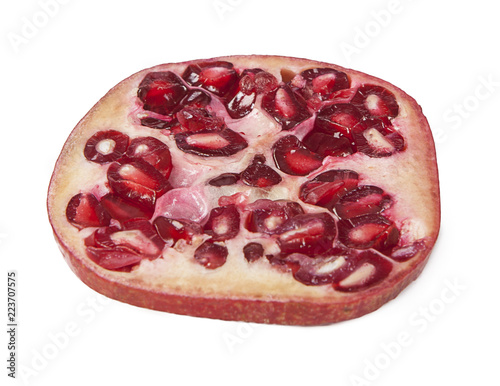 pomegranate, fresh, isolated, on white, background, vitamin, nature, raw, organic, cut, closeup, piece, diet, vegetarian, tropical, ripe, healthy, white, food, red, fruit, dessert