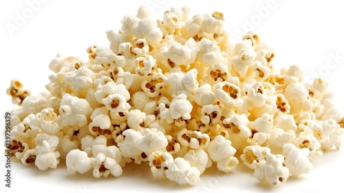 Fresh Popcorn Pile on White Background for Culinary Use and Snacking