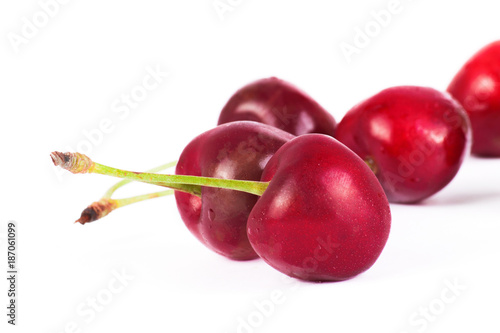 red, cherry, berry, food, nobody, ripe, fruit, closeup, stem, raw, leaf, delicious, white, isolated, sweet, freshness, fresh, juicy, healthy, shiny, vegetarian, bright, studio, diet, background, tasty, clean, heap, dessert, antioxidant, natural, hand, hold
