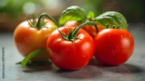 tomatoes, red, fresh, organic, vegetable, basil, vine, garden, healthy, food, ingredient, ripe, juicy, harvest, raw, culinary, cooking, salad, nourishment, nature, table, background, macro, detail, epicure, vegan, vegetarian, summer, agriculture, kitchen, delicious, bright, vibrant, leaf, stem, seasonal, produce