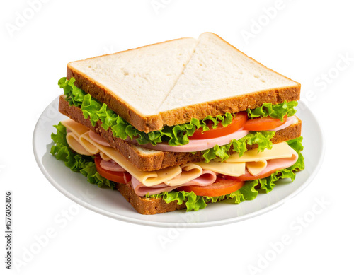 Fresh Sandwich Cut in Half on a White Plate – Top View