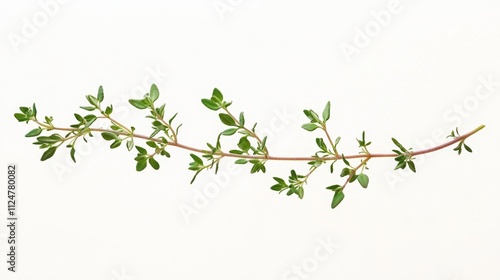 Fresh Thyme Sprig Isolated on White Background with Vibrant Green Leaves, Perfect for Culinary, Herbal, and Natural Health Illustrations and Presentations