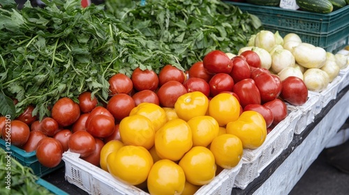tomatoes, market, fresh, vegetable, herb, onion, produce, food, healthy, farmer, agriculture, cooking, ingredient, diet, nourishment, organic, farm, garden, summer, vibrant, colourful, red, yellow, green, healthy eating, lifestyle, natural, bounty, harvest, delicious, tasty, vitamin, antioxidant, vegetarian, vegan, salad, receipe, grocery, shopping, market stall, local, seasonal, fresh produce