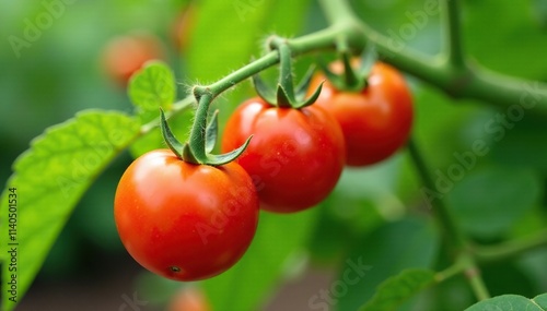 Fresh tomatoes ripening on the vine of a garden tomato plant, vines, produce