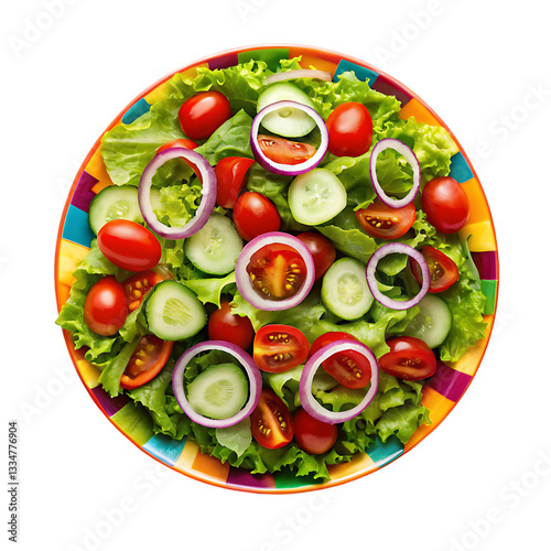 salad, vegetable, healthy, food, fresh, diet, vegetarian, lunch, dinner, meal, tomatoes, cucumber, red onion, lettuce, bowl, colourful, delicious, tasty, eating, nourishment, vitamin, receipe, cooking, ingredient, green, red, summer, spring, weight loss, fitness, lifestyle, organic, natural, farm fresh, vegan, side dish, eatery, menu, catering, food photography, topview, isolated, white background, vibrant, bright