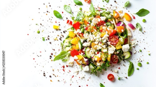 salad, vegetable, feta, healthy, food, fresh, delicious, receipe, cooking, diet, meal, summer, lunch, dinner, tasty, ingredient, cookery, vegetarian, vegan, epicure, eatery, eat, nourishment, organic, vitamin, lifestyle, balanced, colourful, plate, bowl, table, background, white, photo, studio, epicure, deliciously