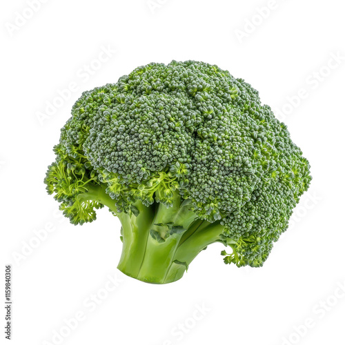 Fresh Vibrant Green Broccoli Head Isolated on White Background